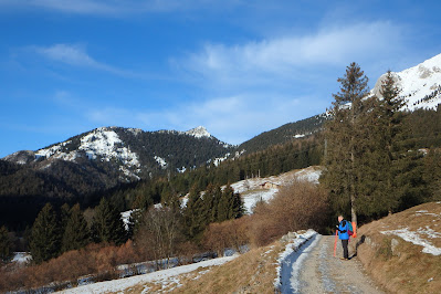 Una facile escursione che si snoda alla base del versante sud della Presolana porta alla malga Cornetto, dal pianoro della quale si gode una vista spettacolare. Con neve assestata, questo itinerario può rappresentare una ciaspolata adattissima per i principianti.